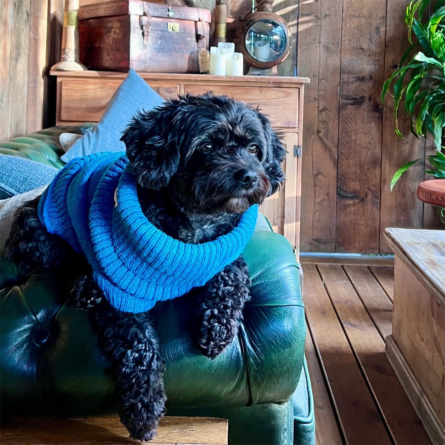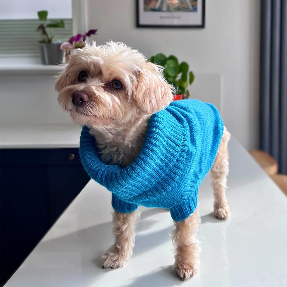 This gorgeous British wool dog jumper and beanie hat set from Wag & Wool will keep you both warm and cosy through the colder seasons. This lovely set includes a super cute dog jumper for your pup and a matching woolly hat for you! Designed and knitted in the UK from pure British wool, both pieces are soft, warm, and oh-so-comfortable. Whether you’re heading out for a chilly walk or posing for a cute photo together, this matching look is guaranteed to turn heads and tails! It’s the pawfect gift for dog lovers or a little treat for you and your pooch. Styled in beautiful eye-catching Cerulean Blue.