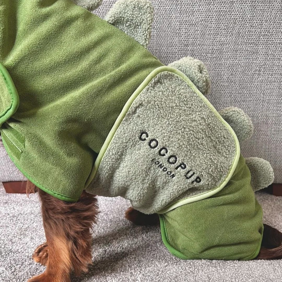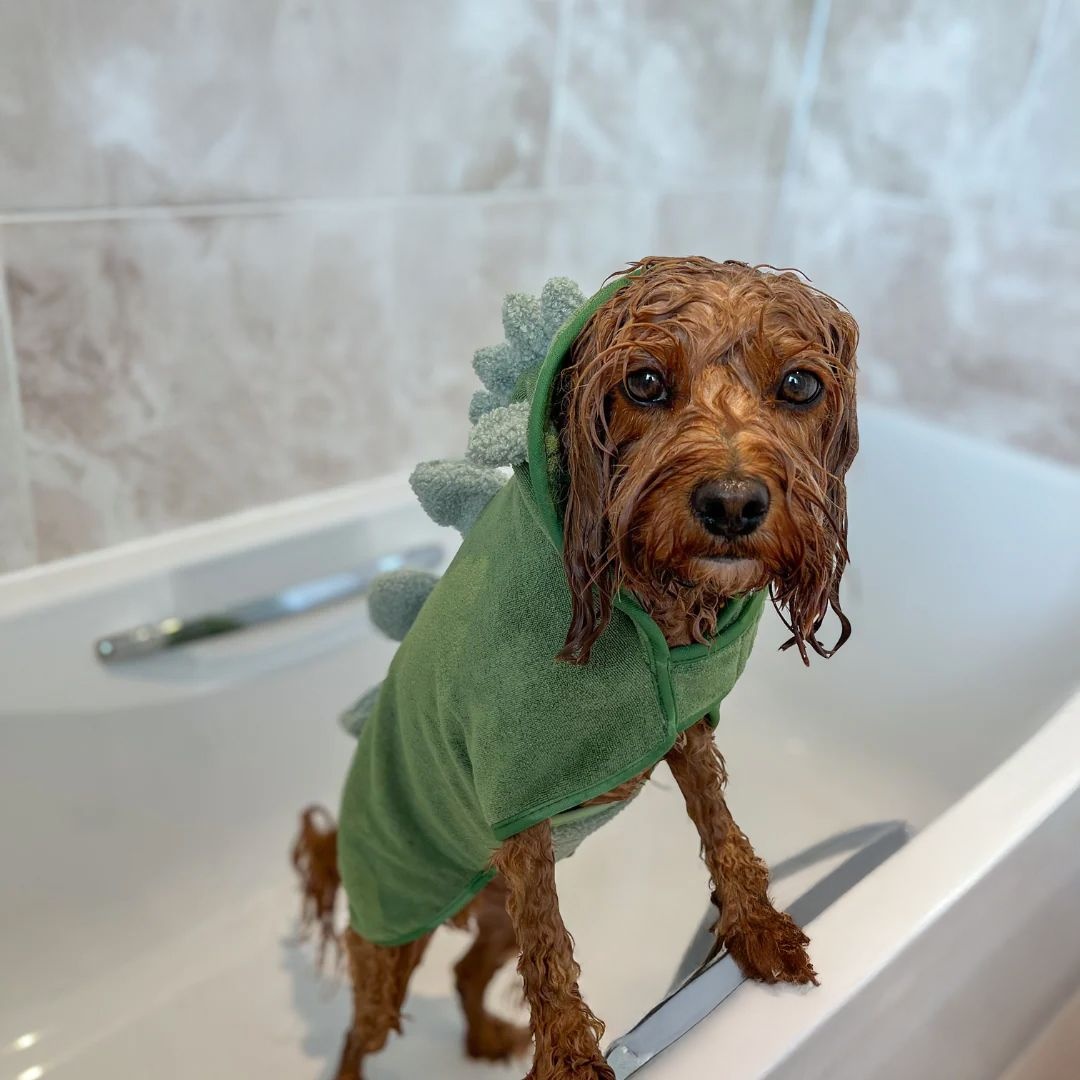 Manage bathtime and wet walks with the Cocopup London Dinopup dog drying robe.