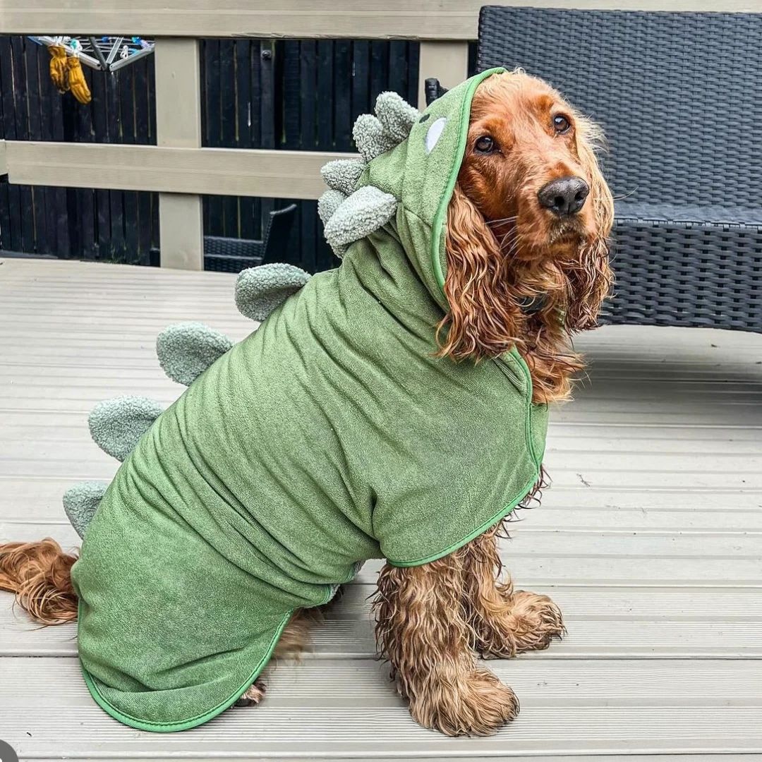 Dry your doggo after bathtime and wet walks with this cute Dinopup dog drying robe from Cocopup London. This dog bathrobe has a playful Dinosaur design that is just dino-mite! This premium microfibre robe is super absorbent, easy to put on and quickly wicks away moisture after baths, swims, or rainy walks. It fastens with Velcro at the neck and belly to secure it in place for a solution that’s functional, fun, and uber cute! And.. it makes an original Halloween outfit. Just need to teach them to roooar and you're all set.