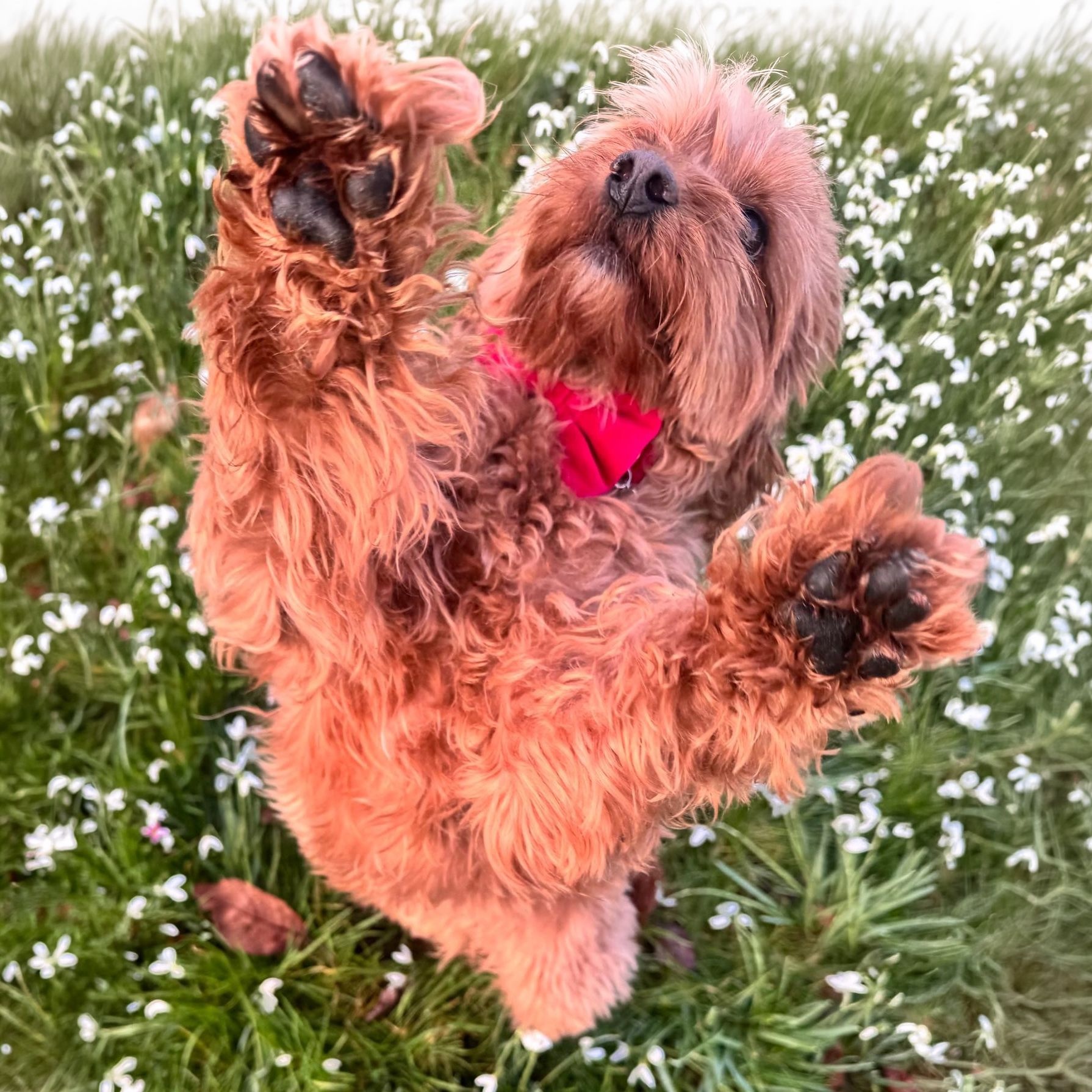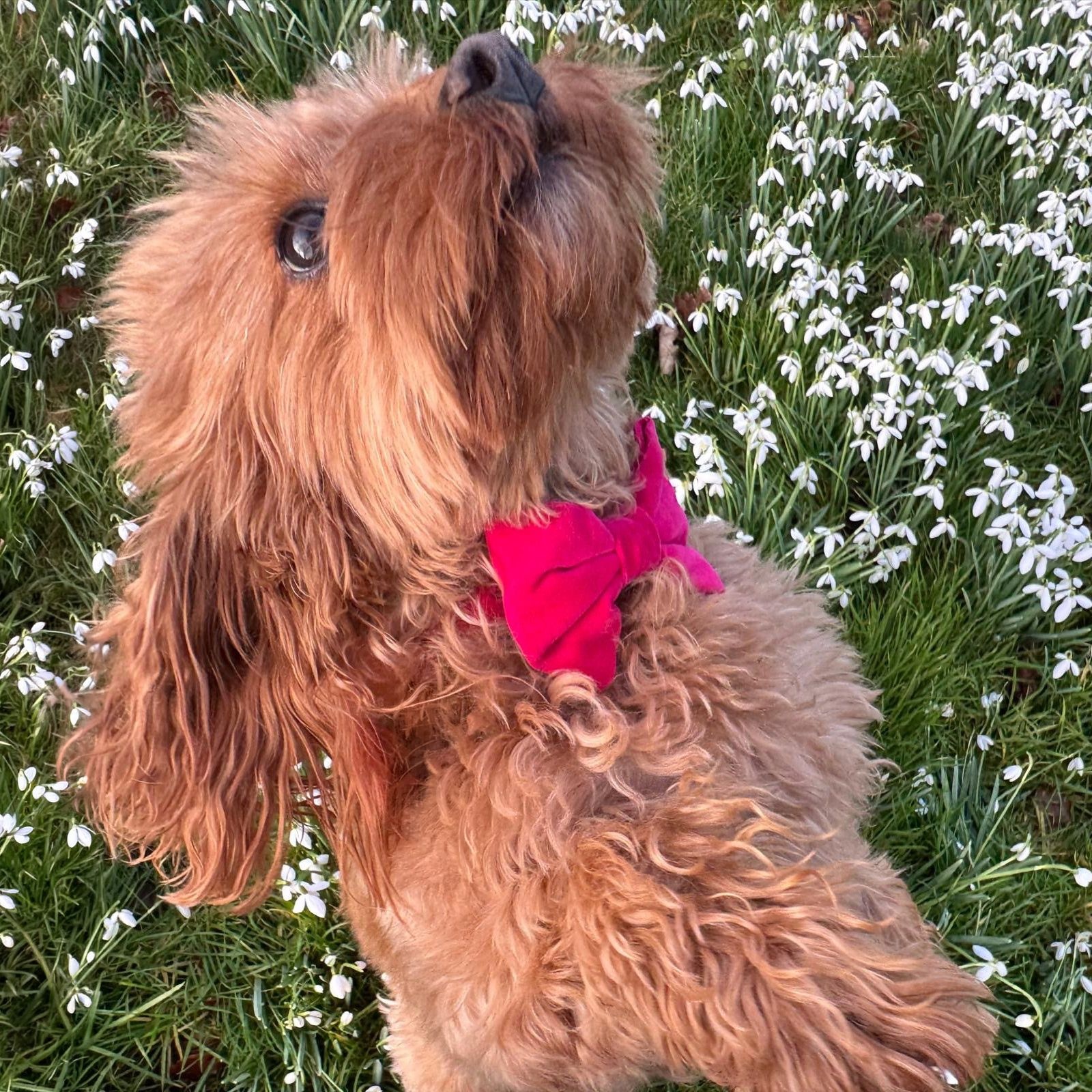 This hot pink velvet collar beautifully shows off your dog’s coat and adds a bold pop of colour. The bow tie is removable so you can change up your pup’s look to suit any occasion. Available in a range of sizes, this statement dog collar is just made for pups who love to stand out from the crowd. Seen here worn by our very own woofermodel Bella looking very pretty in pink.