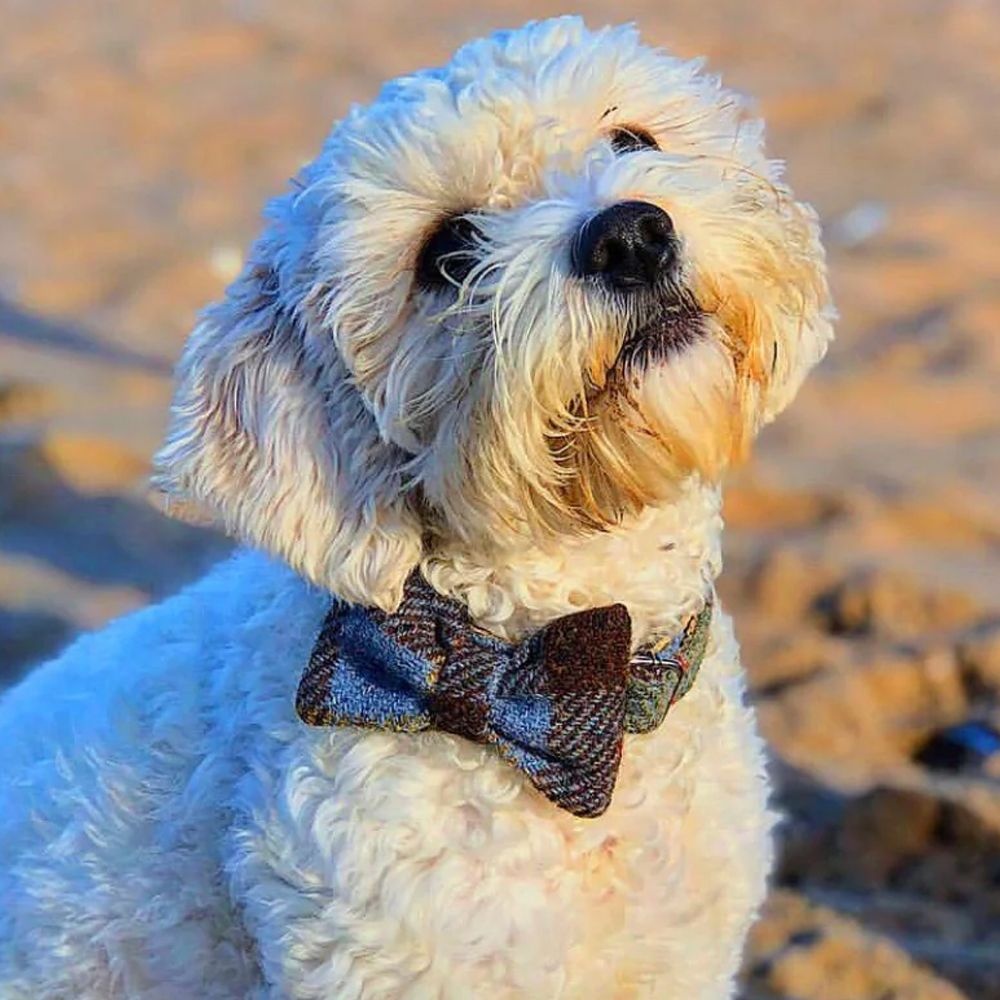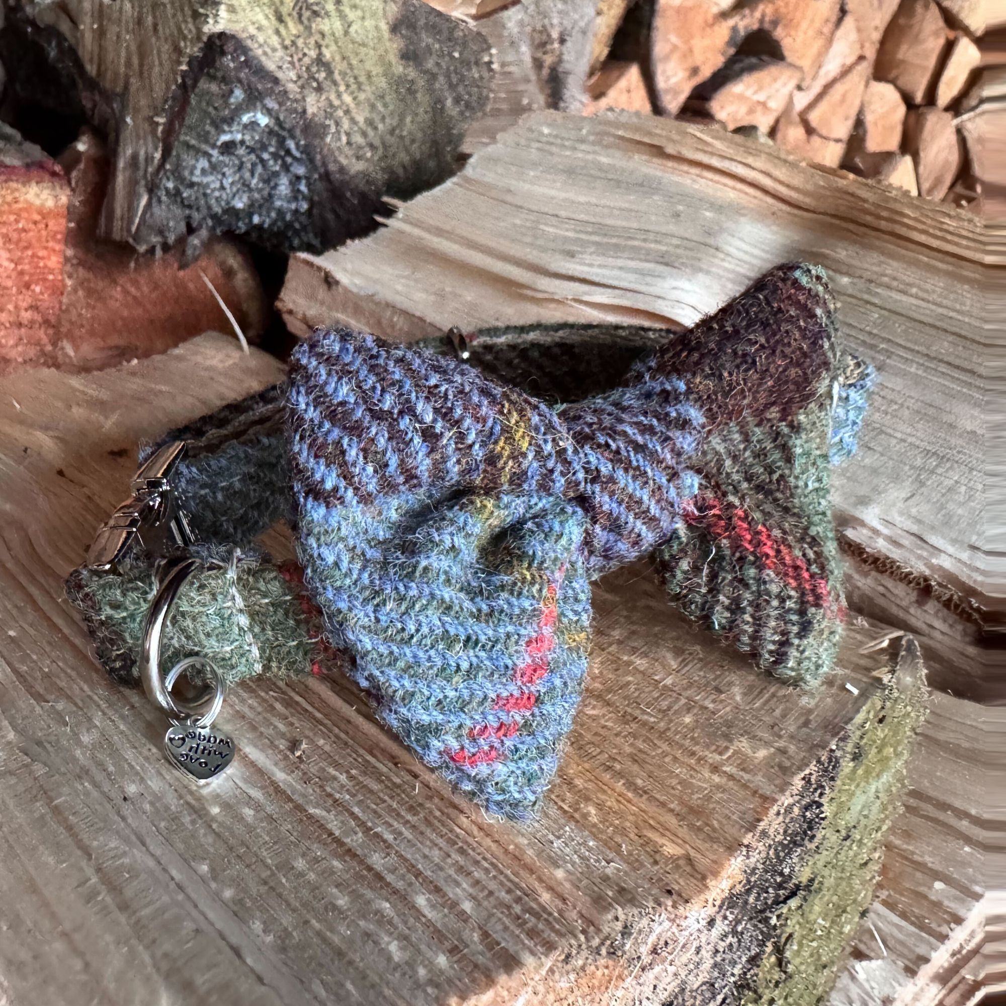 Balmoral Blue Harris Tweed Bow Tie Dog Collar
