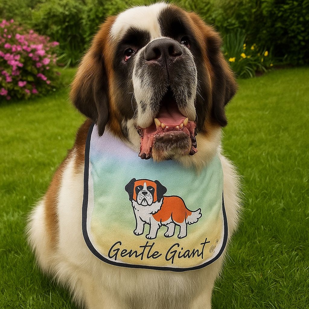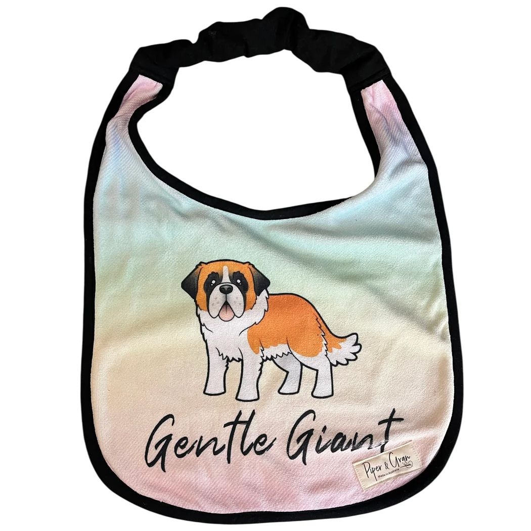 - Keep your dog drool free and looking cute with the Piper & Gran Pink Gentle Giant dog drool bibs.