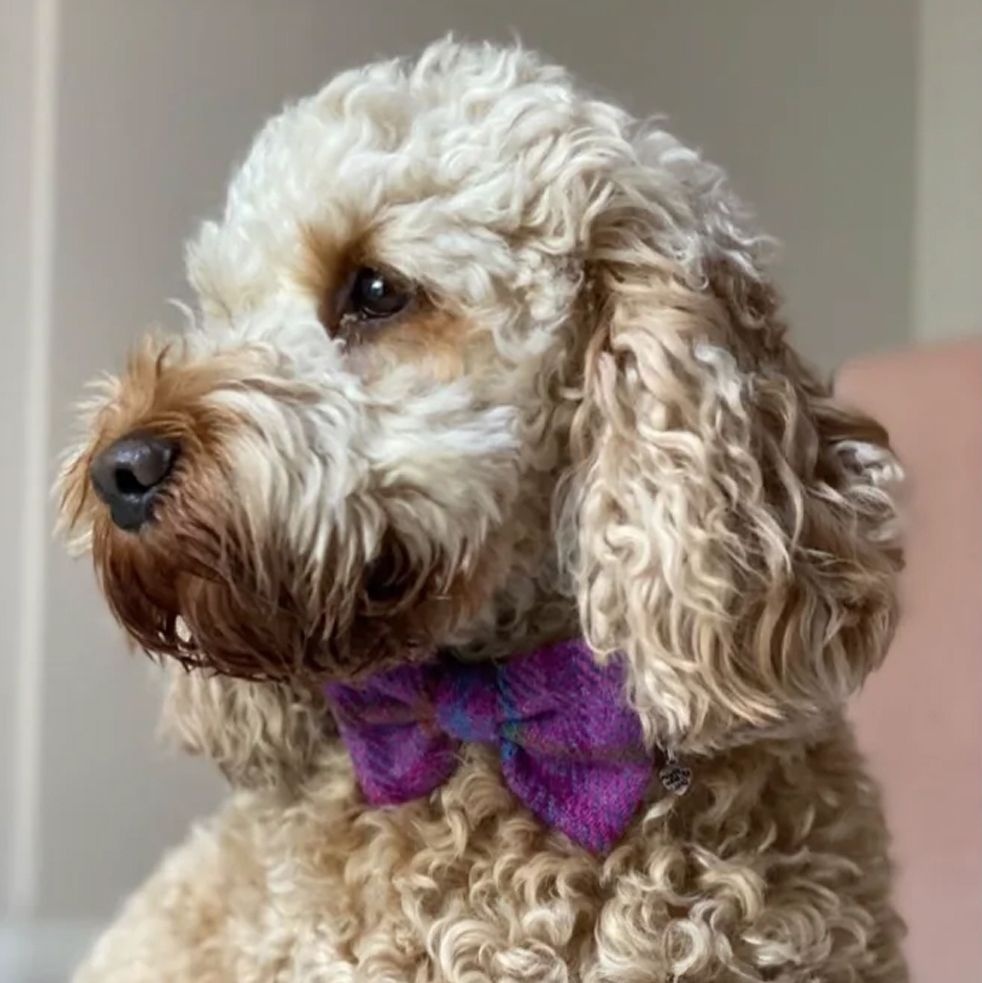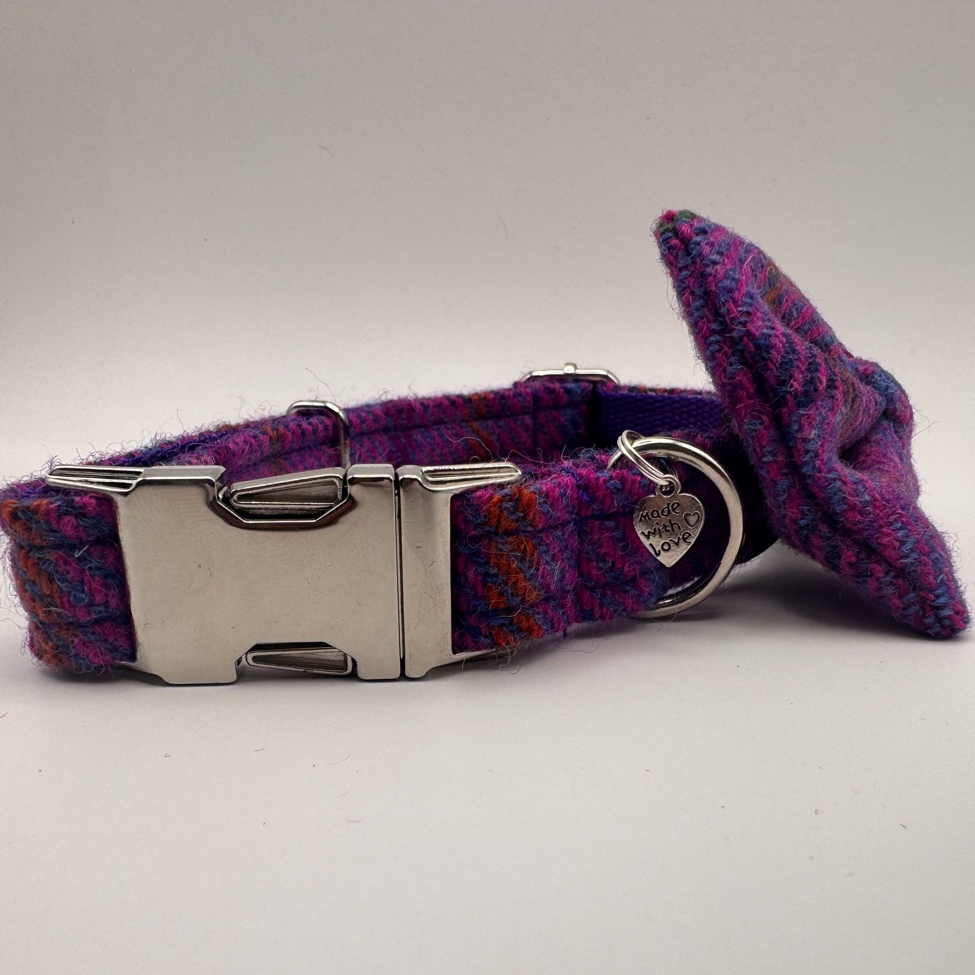 It’s styled in Purple Check Harris Tweed that looks fantastic against any dogs fur.