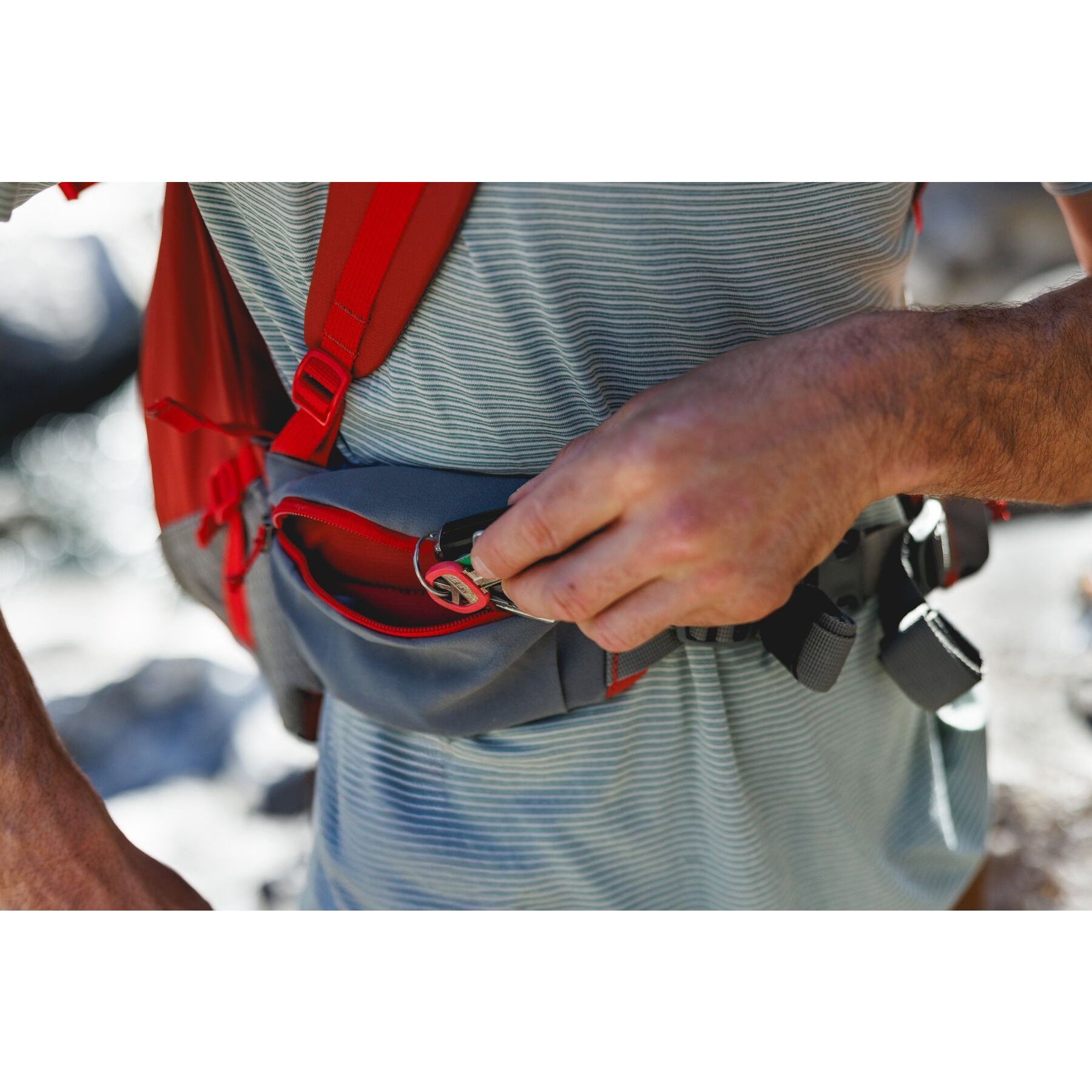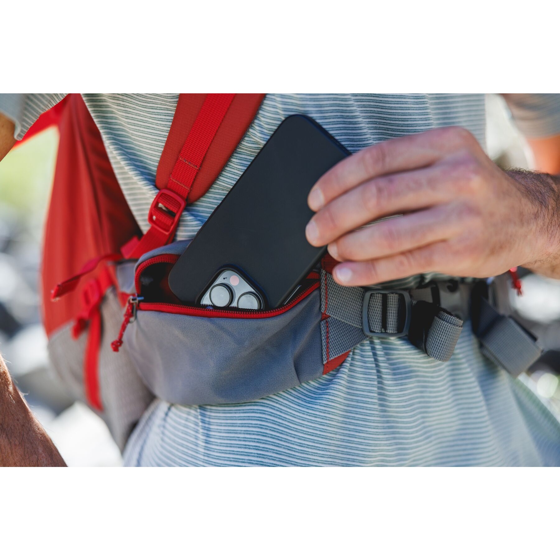 Pockets in the hip belt take care of poo bags, treats and most mobile phones.