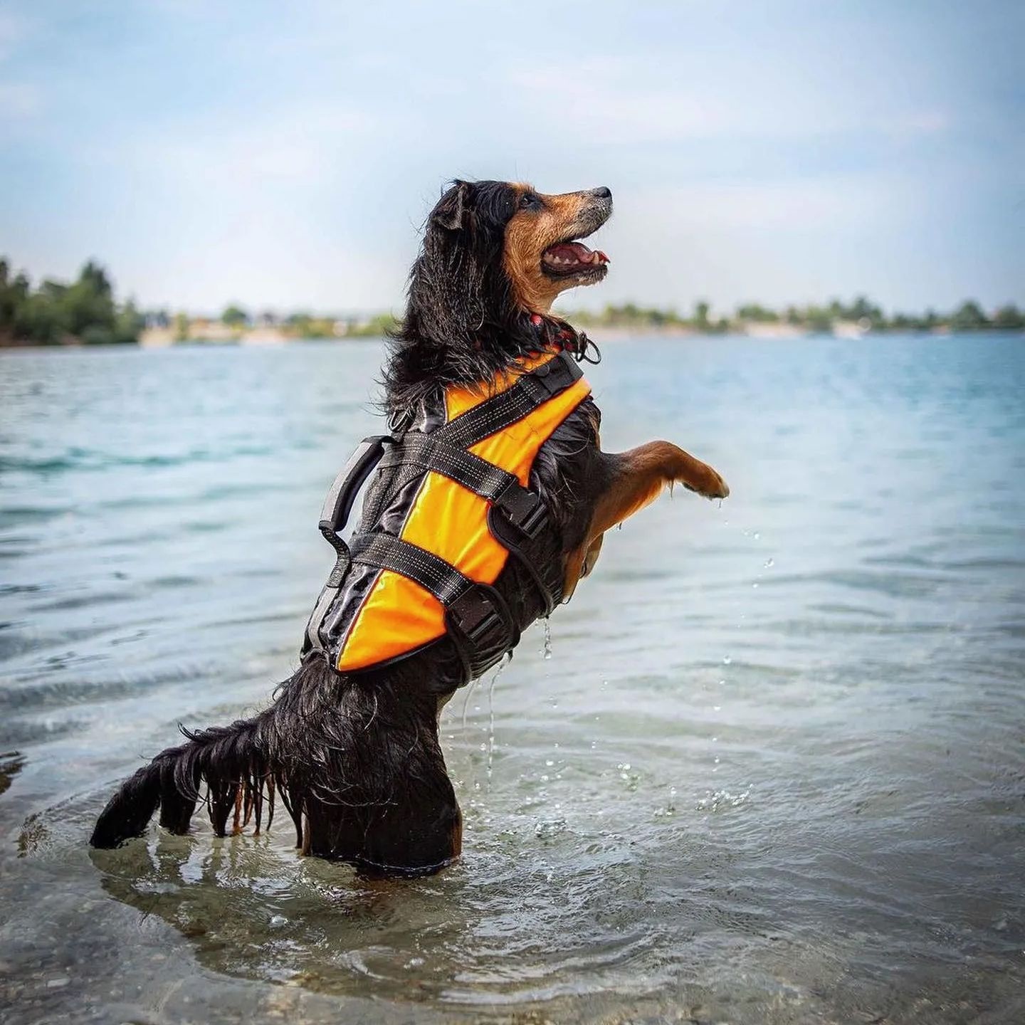 The Rukka water dog safety life vest is perfect for intrepid pups who love water! This doggie life vest keeps your pup buoyant and safe while in and out on the water. Whether you’re wild swimming, sailing, paddle boarding or just enjoying time by the water, this life jacket has got you covered. Designed with comfort, visibility, and security in mind, it features adjustable straps for a good fit, a sturdy grab handle for quick rescues, and comes in bright orange with reflective details so your dog is always easy to spot.