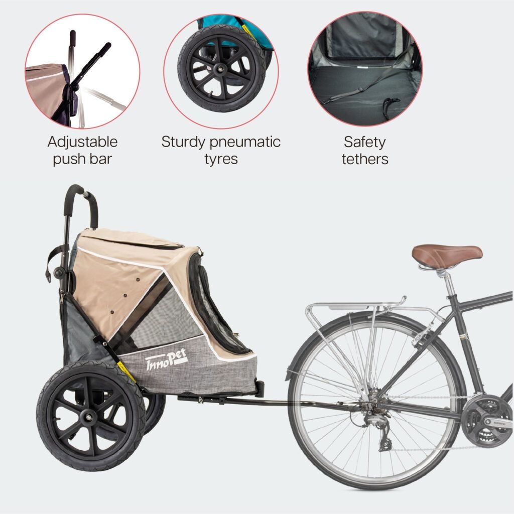 The Sporty Evolution dog pram & bike trailer hybrid from InnoPet ensures that your dog can enjoy a gentle stroll or an exciting ride.
